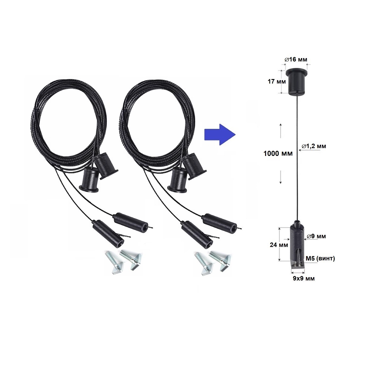 Длина каждого троса: 1000 мм