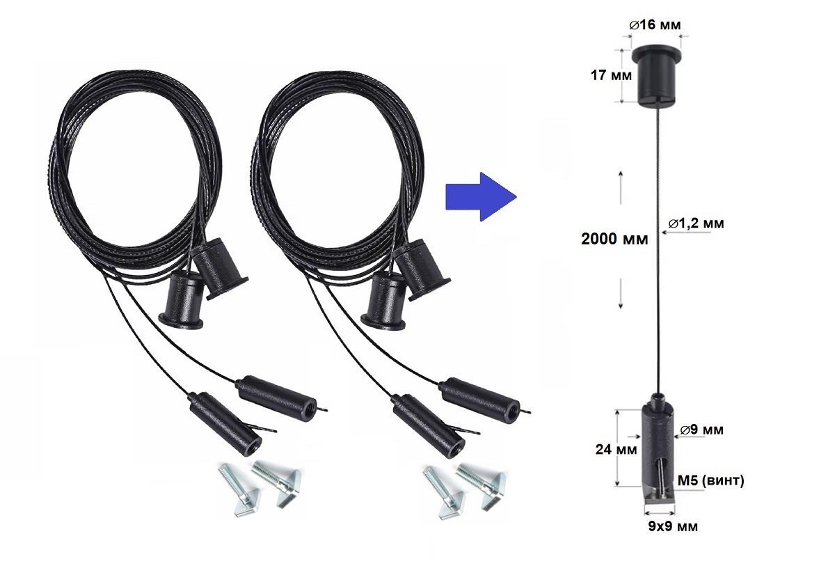 Качественная тросовая монтажная система для подвесного крепления к потолку светильников, шинопровода, профиля, LED панелей и другого оборудования.
